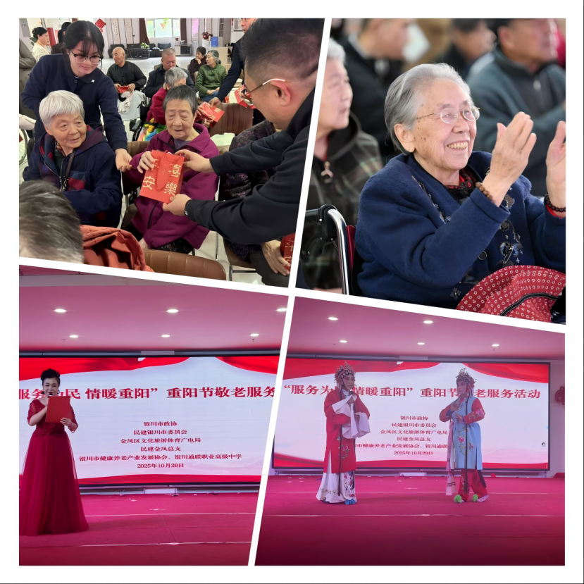 歌舞颂盛世,敬老传真情。10月29日下午,在第74个重阳节到来之际,一场由银川市健康养老产业协会、银川市政协社法委、民建银川市委会、金凤区文化旅游体育广电局、民建金凤区总支等多家单位联合主办的“服务为民 情暖重阳”敬老服务活动,在金凤区综合福利中心温暖上演。该活动由市委会会员、市健康养老产业协会会长李明辉牵头组织,获得宁夏日报、华兴时报等主流媒体报道,展现了新时代民主党派成员服务社会、履职为民的责任担当。